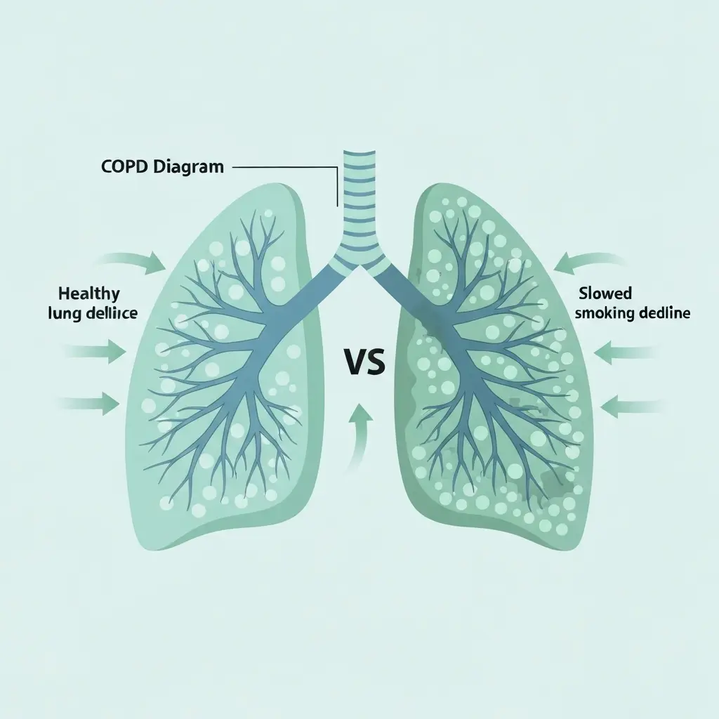 Sustained smoking cessation cuts the rate of lung function decline in half — to levels comparable to healthy non-smokers. For a COPD patient already facing disease progression, cessation essentially puts the progression on pause at the much slower trajectory of normal aging.